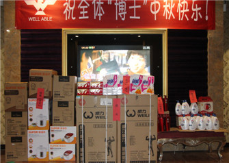 晚會開始進行的是宴會,會上集團領導親自敬酒,祝大家節日快樂,身體健康,大家積極回應,其樂融融。酒足飯飽之后,開始重頭戲----擲骰子博餅競逐「狀元」銜頭,每圍按擲得「狀元」、「榜眼」、「探花」、「四進」、「舉人」及「秀才」,對應豐富獎品。全場歡聲笑語,氣氛熱烈。