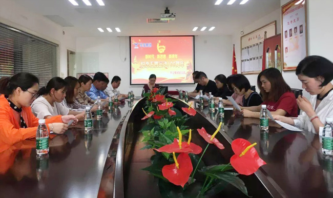 時光走過了一個世紀(jì),五四精神不?曾褪色?,青春之歌也依然絢麗嘹亮。為了紀(jì)念五四運動100周年,引領(lǐng)廣大青少年高舉中國特色社會主義偉大旗幟,深入學(xué)習(xí)貫徹習(xí)近平新時代中國特色社會主義思想和黨的十九大精神,激發(fā)青少年愛黨、愛國、愛社會主義的家國情懷,華寶集團(tuán)團(tuán)支部在五四當(dāng)天組織團(tuán)員學(xué)習(xí)習(xí)近平在紀(jì)念五四運動一百周年的講話和重溫入團(tuán)誓詞活動,以此紀(jì)念五四運動。