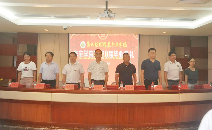 此次典禮也是華寶學院的首屆畢業典禮,出席典禮的領導有泉州紡織服裝職業學院院長李達軒、學院黨委書記陳俊峰、學院副院長關繼東、華寶集團劉德芳總經理、集團總經理助理吳世金、豪寶吳灶生副總經理、學院紡織系副主任劉桃鳳老師、班主任黃曉茵老師。集團辦公室主任師體偉出席并主持了此次畢業典禮。