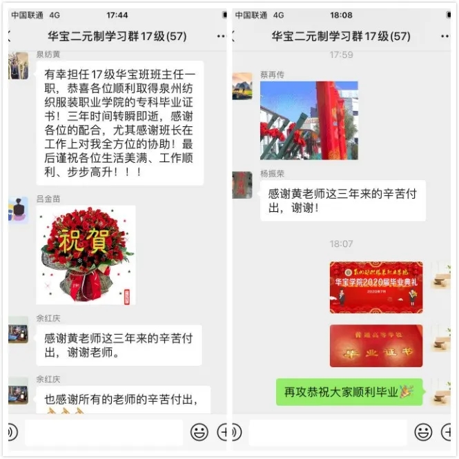 華寶集團總經理劉德芳(圖一)、紡織學院副院長關繼東(圖二)、教師代表黃曉茵(圖三)、畢業生代表陳貞(圖四)分別發表講話,表達對學院和企業開展的“二元制”教學工作的肯定和對畢業生未來的美好祝愿。