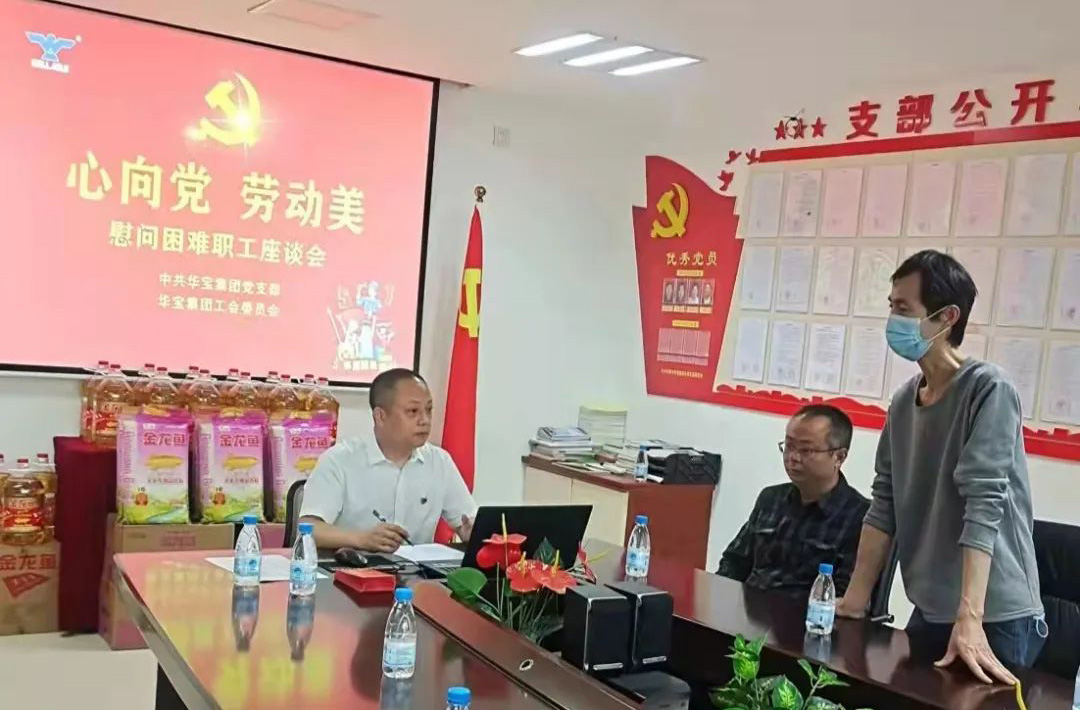 2022年4月29日,在中國(guó)第72個(gè)勞動(dòng)節(jié)即將到來(lái)之際,華寶集團(tuán)黨支部和工會(huì)隆重舉行了慰問困難職工和表彰“抗疫先鋒”活動(dòng),以關(guān)懷和致敬一線員工,激發(fā)勞動(dòng)最光榮熱情,集團(tuán)黨支部書記、工會(huì)主席師體偉主持了活動(dòng)。