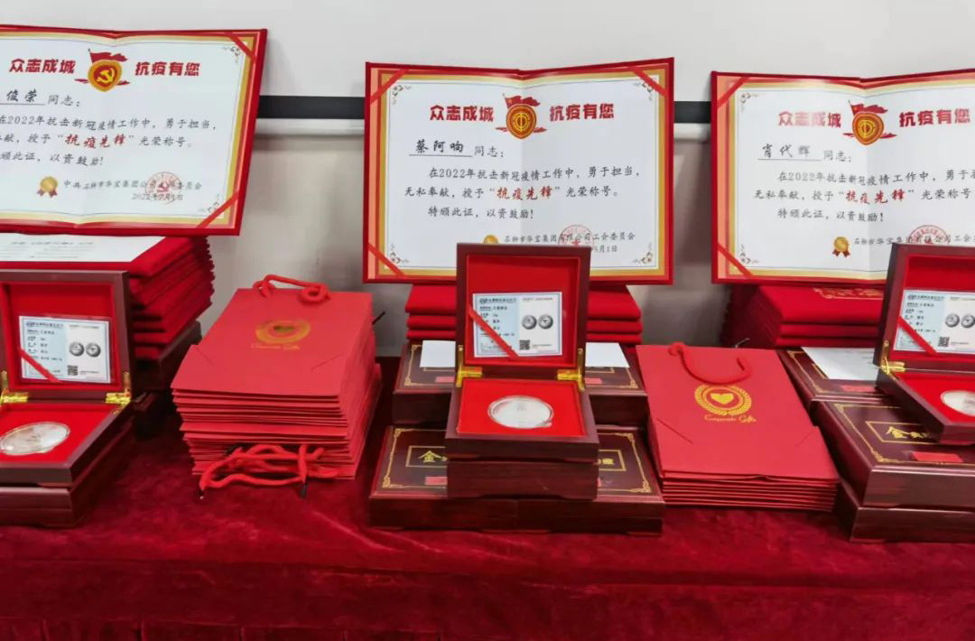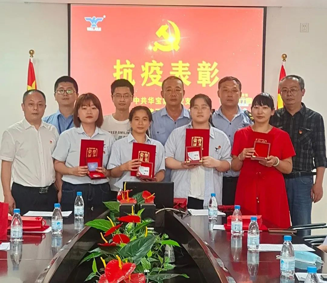 表彰抗疫先鋒 同樣,在三月份出現(xiàn)的新冠疫情里,在公司董事會(huì)以及黨群工作部的帶領(lǐng)下,公司上下并肩作戰(zhàn),齊心守護(hù),廣大黨員干部及志愿者積極響應(yīng)政府號(hào)召,迅速反應(yīng),第一時(shí)間奔赴“抗疫”前線,以實(shí)際行動(dòng)詮釋了“奉獻(xiàn)、友愛、互助、進(jìn)步”的志愿精神,取得了抗擊本輪疫情的階段性勝利。今天,特隆重舉行抗擊新冠肺炎疫情表彰會(huì),向作出貢獻(xiàn)的黨員和職工授予“抗疫先鋒”榮譽(yù)稱號(hào),弘揚(yáng)偉大抗疫志愿精神,致以崇高敬意,表達(dá)衷心感謝。 面對(duì)此次疫情,華寶集團(tuán)的黨員表現(xiàn)出了高度的責(zé)任感和使命感,挺身而出,成為群眾的“主心骨”和先鋒軍,用實(shí)際行動(dòng)當(dāng)好標(biāo)桿,發(fā)揮先鋒作用。他們不忘黨員的初心本色,在黨旗引領(lǐng)下,團(tuán)結(jié)群眾,眾志成城,勇敢地投入到疫情防控前線,堅(jiān)決捍衛(wèi)人民群眾的生命財(cái)產(chǎn)安全,用實(shí)際行動(dòng)彰顯黨員的責(zé)任和擔(dān)當(dāng)。此次受到表彰的一共有12名黨員干部(含2名涉外黨員),分別為師體偉、余紅慶、李樹海、虞先禮、王碧花、文俊榮、周春燕、蔡文明、陳國(guó)華、吳秋媛、張?zhí)⑼豕痖牛A寶集團(tuán)黨支部書記、工會(huì)主席師體偉向他們頒發(fā)了“抗疫先鋒”榮譽(yù)證書和特別定制的紀(jì)念章。