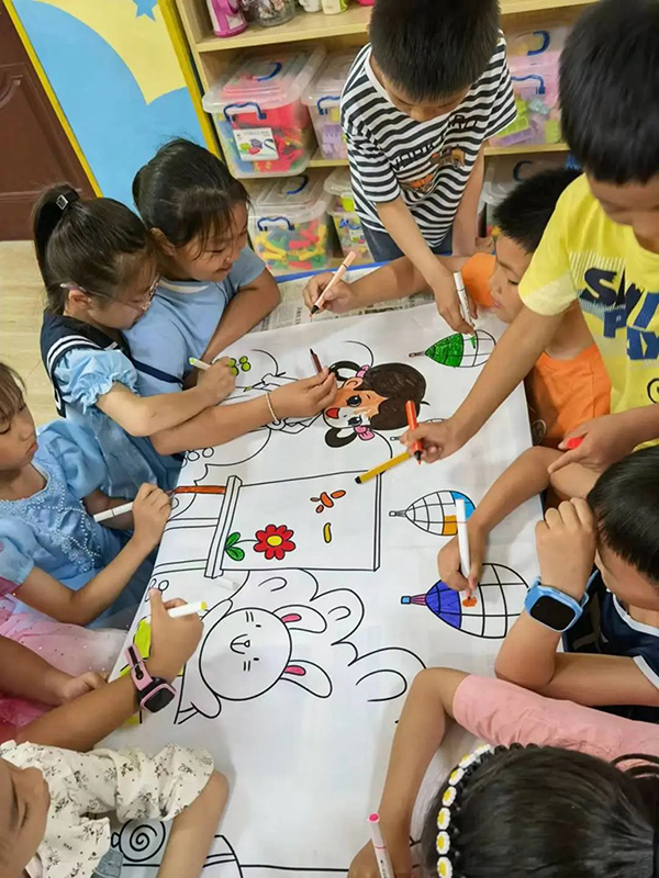 全體小朋友先對喜愛的美術作品進行投票,再一起進行涂鴉活動,在涂涂畫畫中激發了孩子們感受美、表現美、創造美的情感。