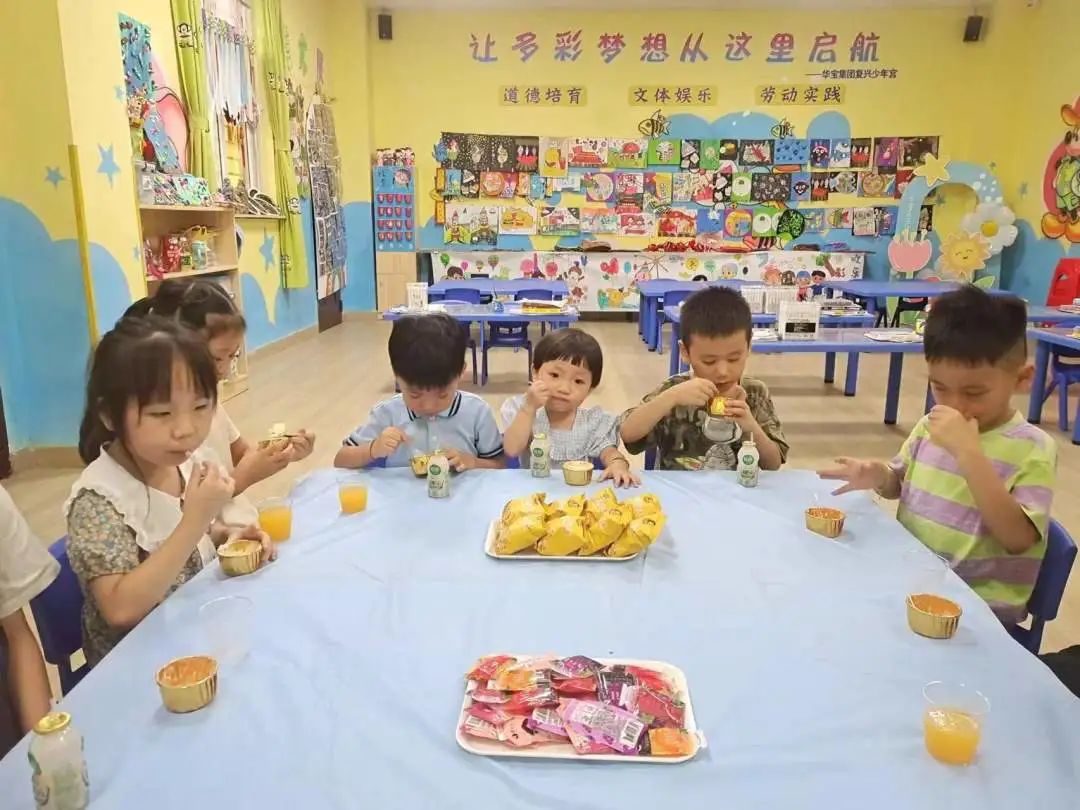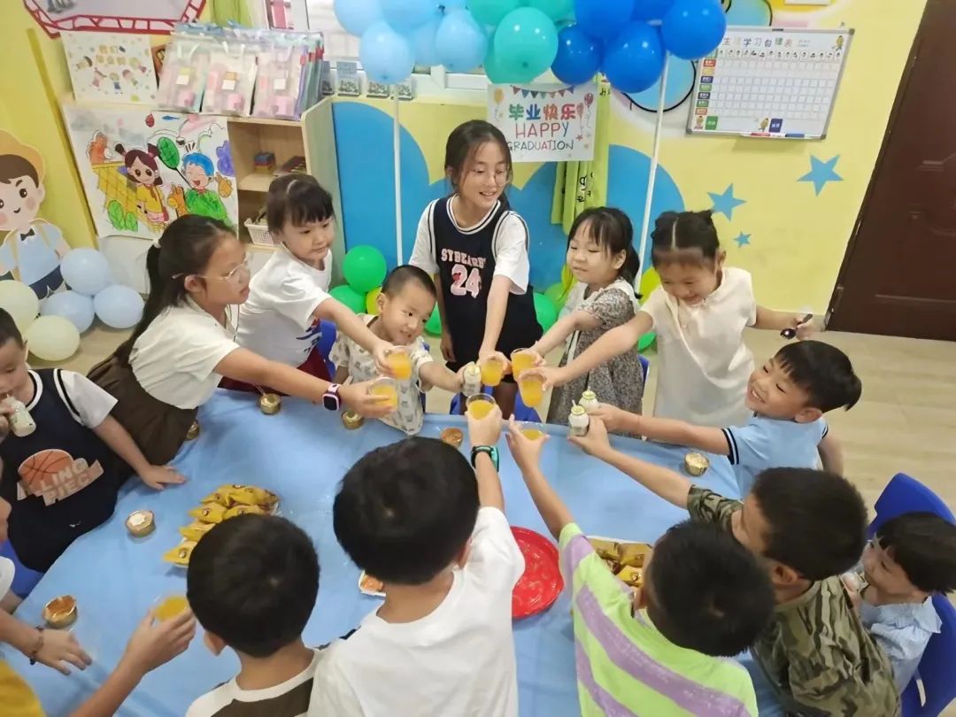 五位即將返程的“小候鳥”與“四點半”活動中心的其他小朋友聚在一起,開心地享用下午茶,感受伙伴們的熱情與陪伴,訴說著不舍與道別......