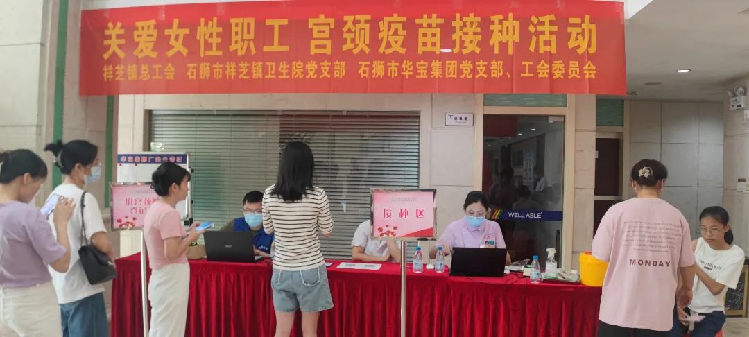 為更好地履行華寶集團黨支部和祥芝鎮衛生院黨建共建協議,落實祥芝鎮衛生院家庭醫生簽約協議,6月23日祥芝鎮衛生院為華寶集團80余位婦女職工提供2價宮頸癌疫苗上門注射服務,為華寶集團女職工的健康保駕護航,也更好地發揮華寶集團黨支部和工會關愛婦女職工作用。 在我國,宮頸癌是第二大女性惡性腫瘤,每年新發病例11萬左右。可謂不折不扣的"紅顏殺手"。不過幸運的是,宮頸癌是目前唯一病因明確、可防可控的癌癥。因此做好疾病科普,讓大家做好預防措施,能夠有效預防宮頸癌。