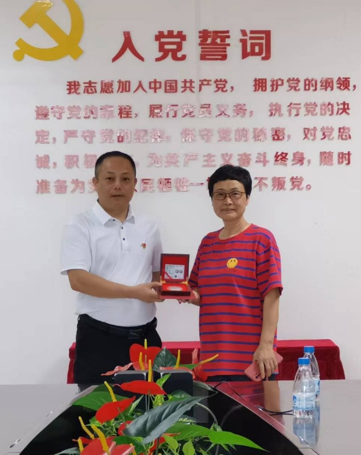 支部書記師體偉為他們頒發了純銀打造刻制專屬姓名的榮休紀念幣,讓這些老黨員感受到組織的關懷與溫暖,感受到自身職業的榮譽感和組織歸屬感,激勵支部其他黨員以他們為榜樣為目標,繼承和發揚吃苦耐勞、愛崗敬業精神,同時接過奮斗的接力棒,讓初心和使命薪火相承。