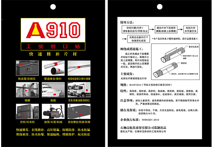 產品名稱:工業創口貼A910快速修補片材